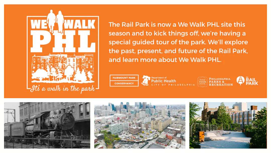 Join the Friends of the Rail Park and We Walk PHL for a special guided tour of the Rail Park’s past, present and future, and learn more about the We Walk PHL program.