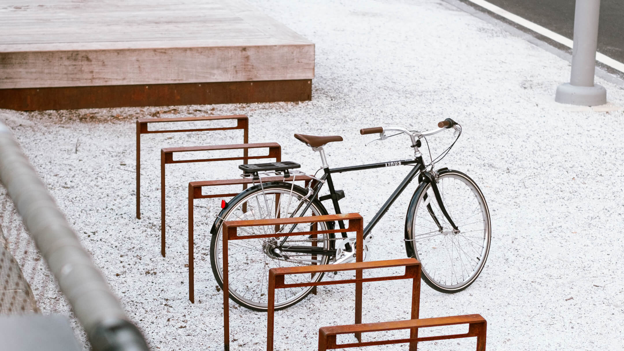 公共自行车架鼓励每个公园的访客使用环保交通工具。